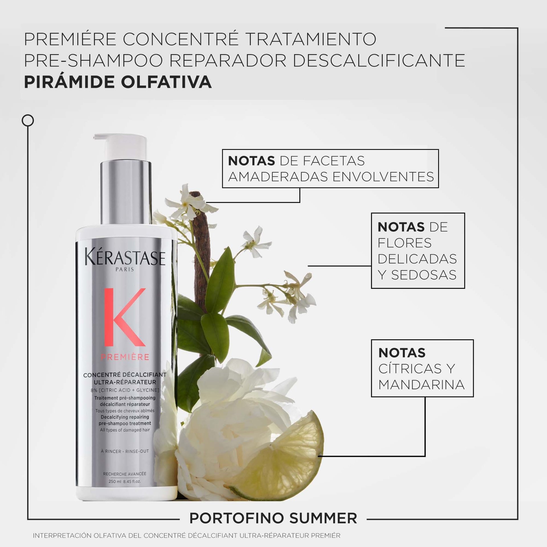 Para cuidar aún más tu cabello decolorado o dañado, combínalo con el resto de la gama Première. Prueba el máximo poder de la técnica de capas: comienza con el tratamiento pre-shampoo, Kérastase Concentré Décalcifiant Ultra-Réparateur, después, sin enjuagar el Concentré, utiliza el shampoo Kérastase Bain Décalcifiant Réparateur encima. Continúa con el acondicionador o máscara antes de aplicar Kérastase Sérum Filler Fondamental como paso final de reparación.